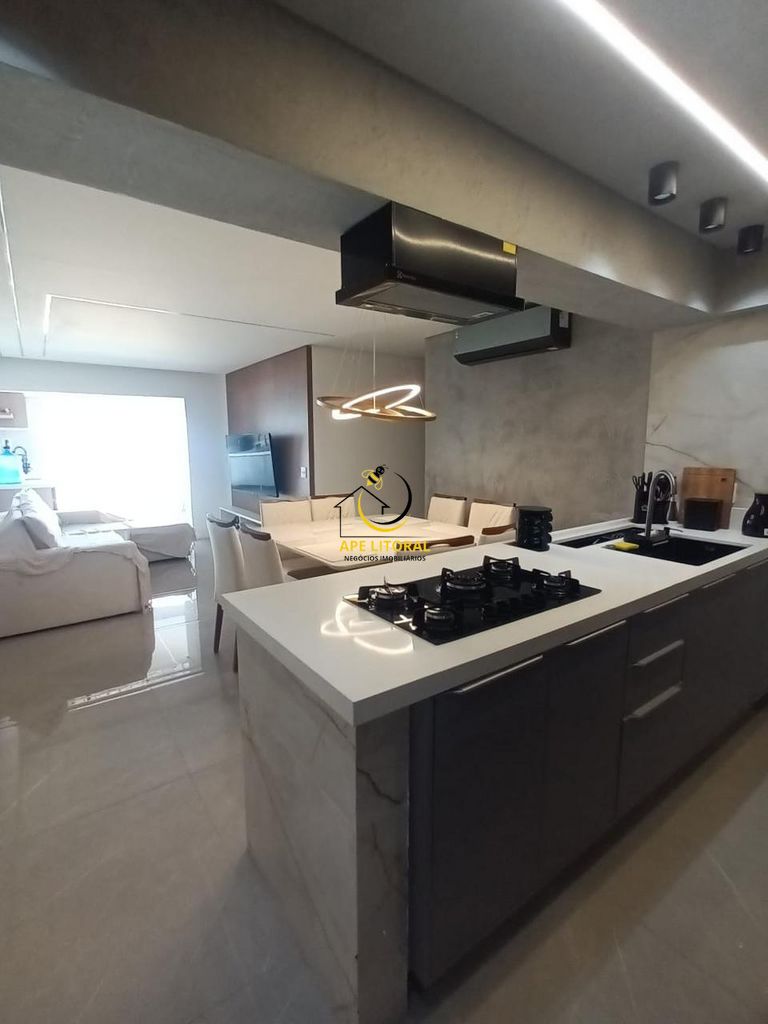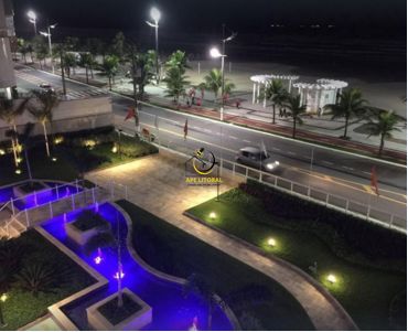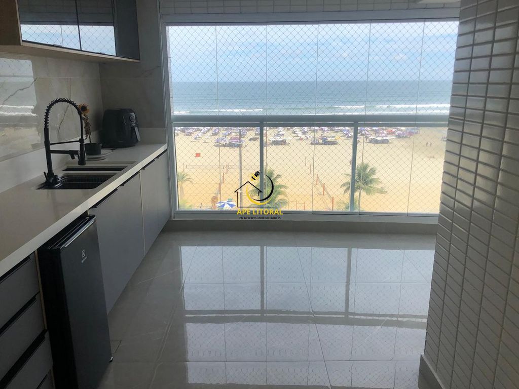 Apartamento com 111 m², 3 dormitórios e 2 suítes, mais dependência de empregada, sala para 2 ambientes, ar condicionado, varanda gourmet, 2 vagas de garagem, totalmente de frente para o mar, Andar baixo, pé na areia, ótimo acabamento com piso porcelanato de alta qualidade e aparelhos de ar condicionado inverter, pias sofisticadas e iluminação diferenciada + vidros nos terraço.